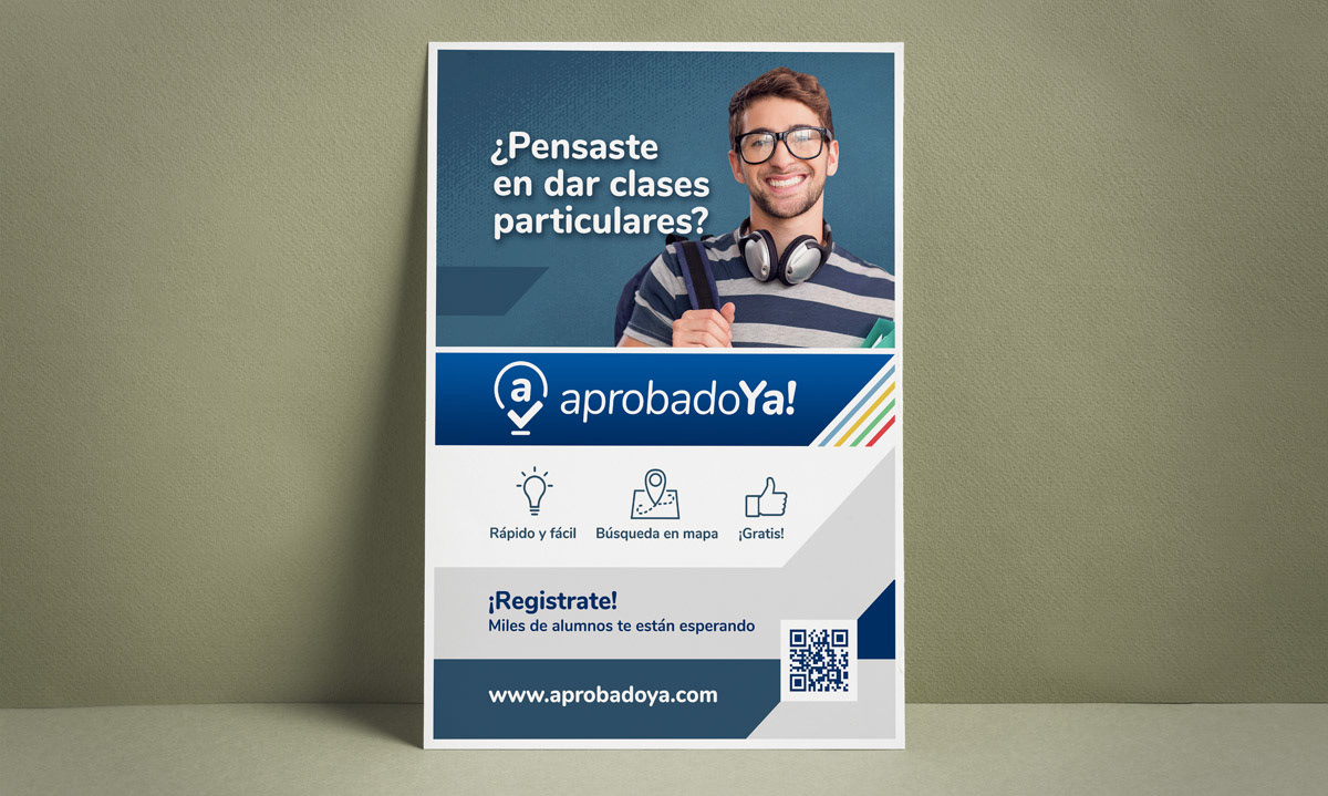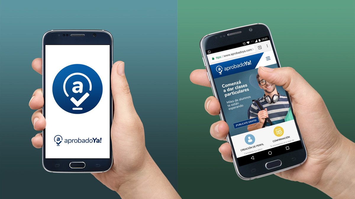 Diseño de identidad visual para la marca AprobadoYa!, sitio web y app de búsqueda de profesores particulares por geolocalización.