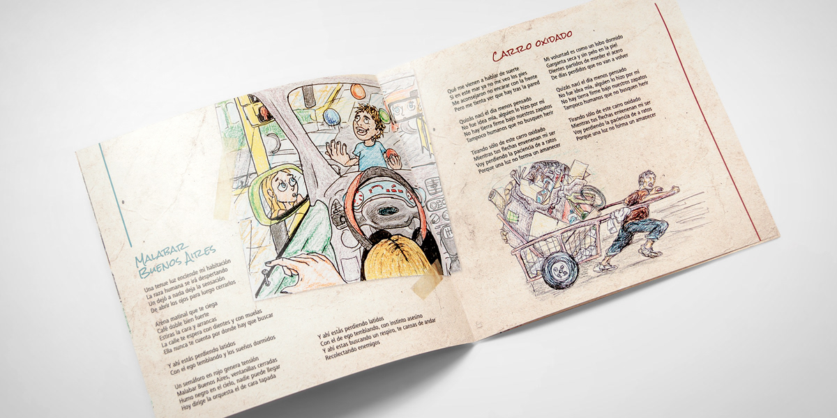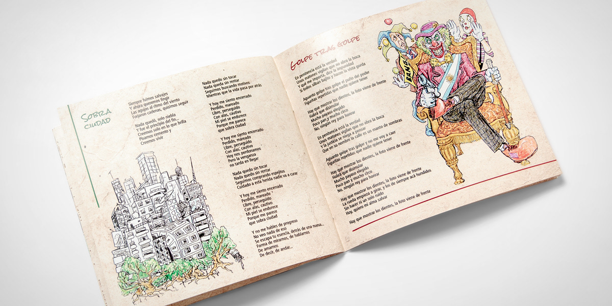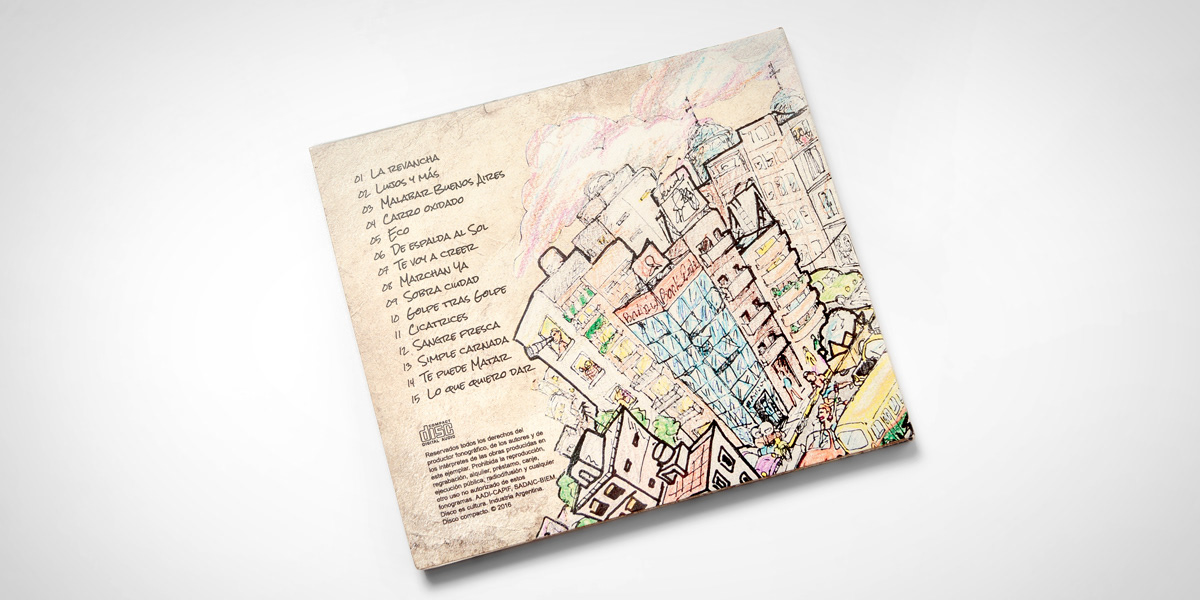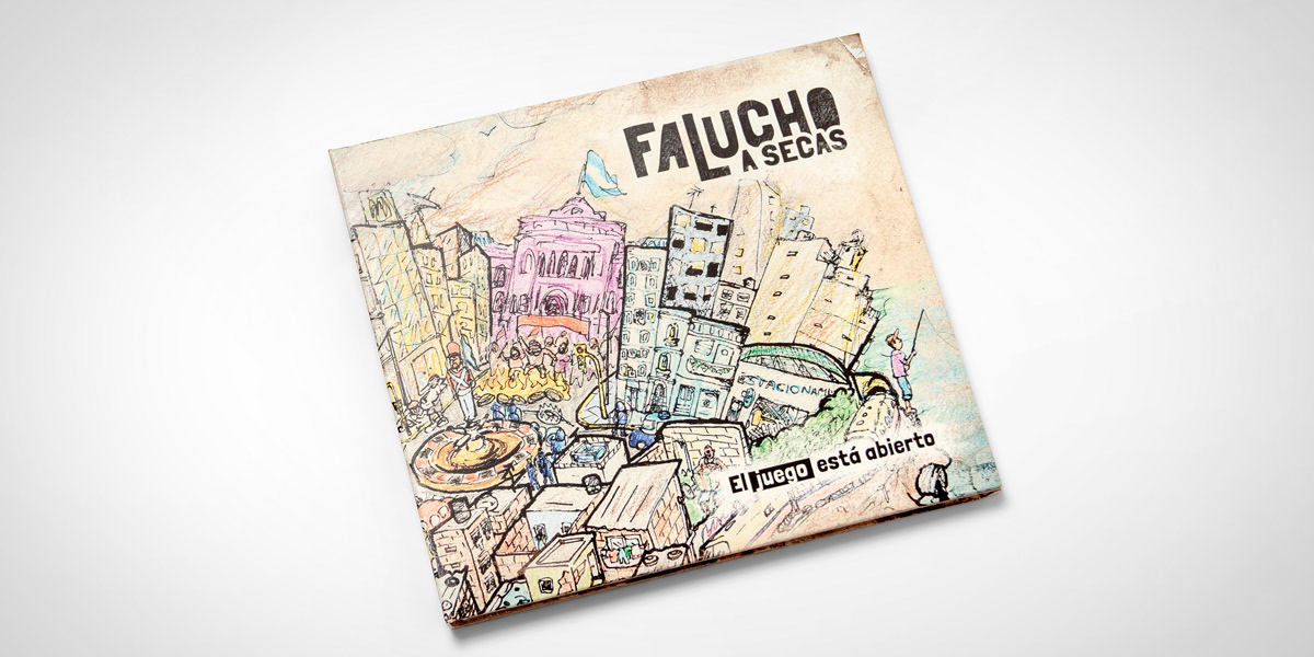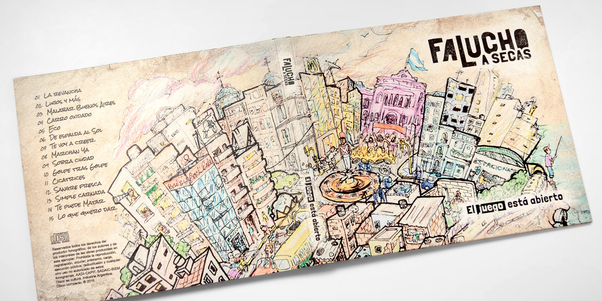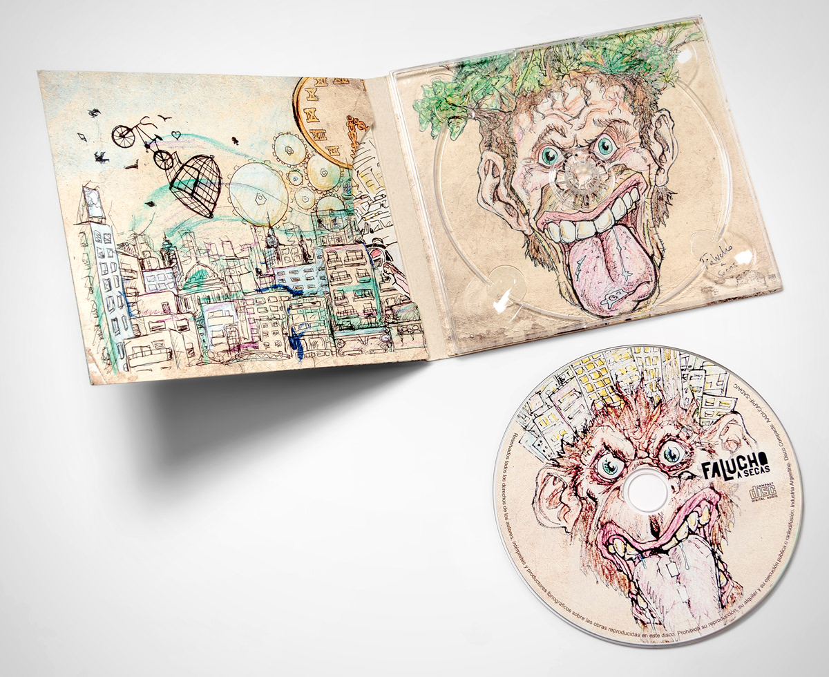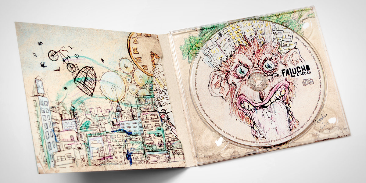 Diseño de packaging del primer CD de la banda "Falucho a secas" de Mar del Plata, Argentina. Ilustraciones: Nahuel Malvino